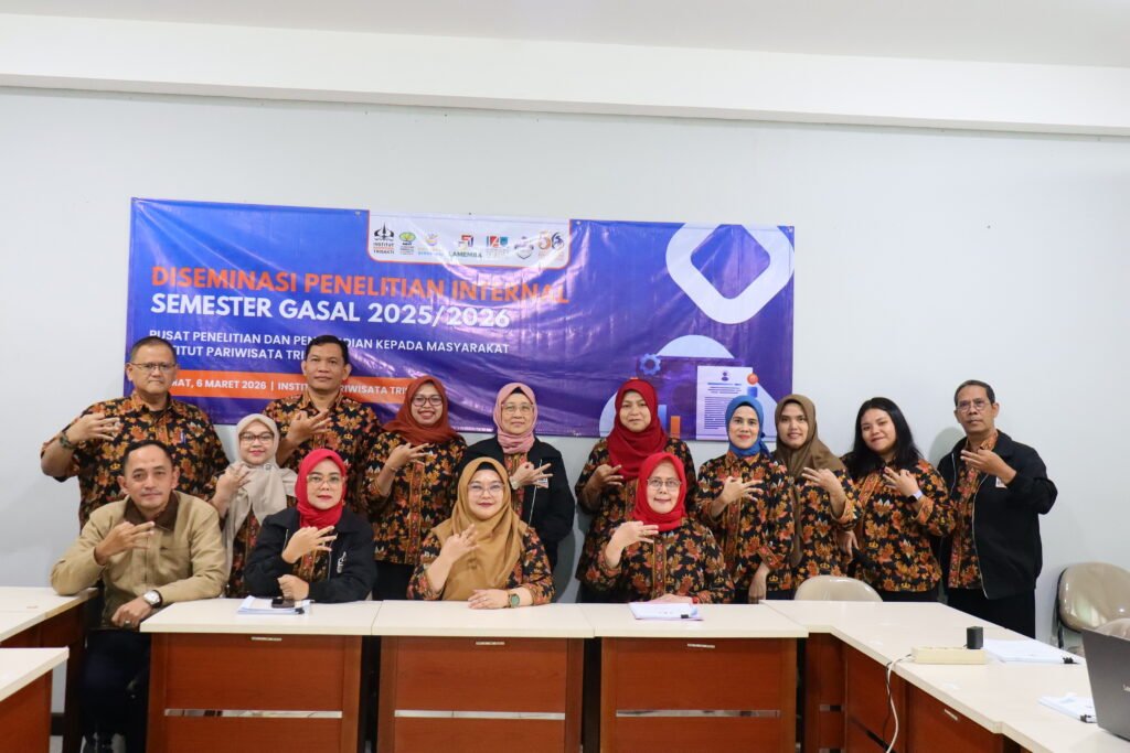 Jakarta, 6 Maret 2026 – Pusat Penelitian dan Pengabdian kepada Masyarakat (P3M) Institut Pariwisata Trisakti menyelenggarakan Diseminasi Hasil Penelitian Internal Semester Gasal Tahun Akademik 2025/2026 pada Jumat (6/3) di Ruang 412 Institut Pariwisata Trisakti. Kegiatan ini menjadi forum akademik bagi para dosen untuk memaparkan hasil penelitian yang telah dilakukan sekaligus memperoleh masukan guna memperkuat kualitas