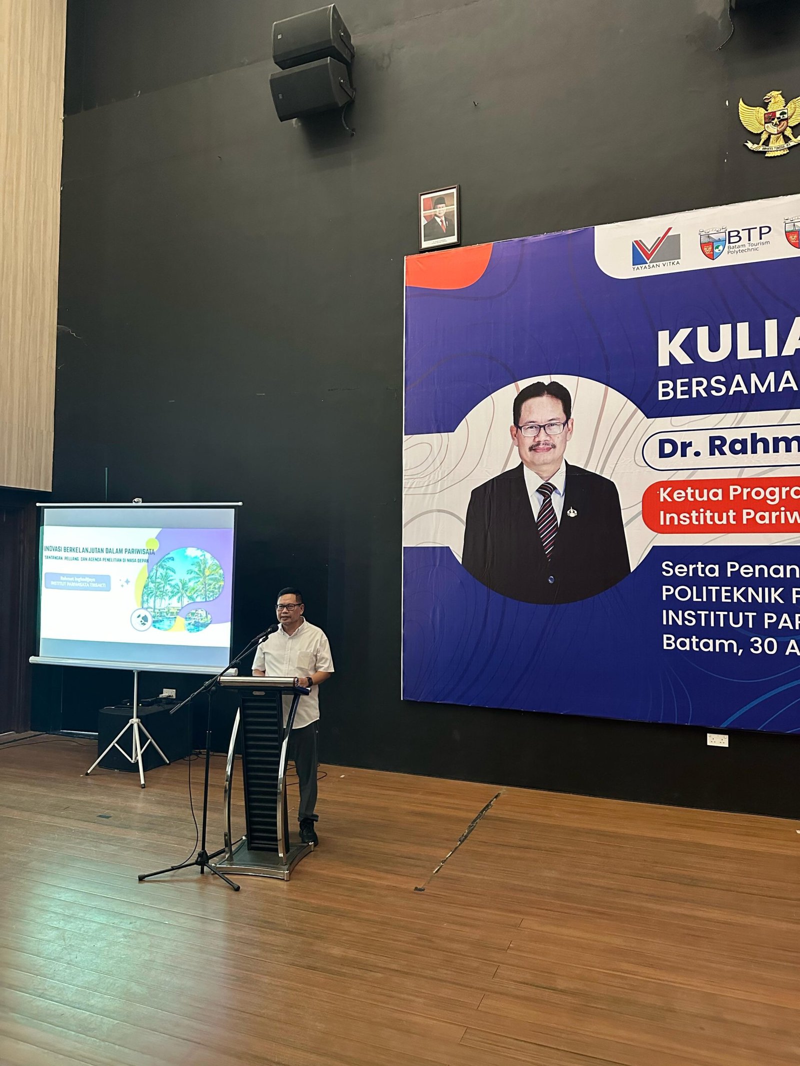 Selain penandatanganan MoU dan MoA, kegiatan ini dirangkaikan dengan kuliah umum bertema “Perspektif Pariwisata dan Tantangan Kemajuan Teknologi” yang disampaikan oleh Dr. Rahmat Ingkadijaya. Kuliah umum ini disambut antusias oleh mahasiswa BTP dari berbagai program studi dan lintas angkatan serta mahasiswa Institut Teknologi Batam (ITEBA) yang turut hadir.