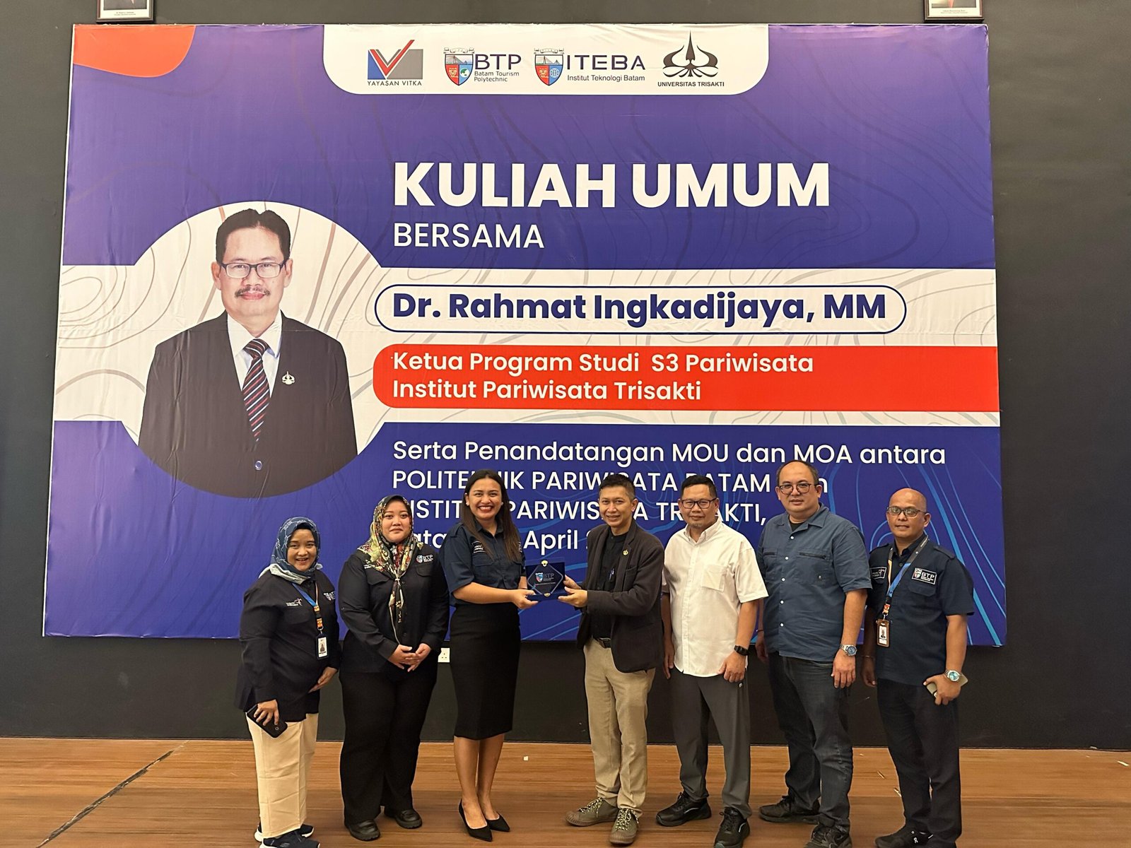 Batam, 30 April 2025 — Institut Pariwisata Trisakti (IP Trisakti) dan Batam Tourism Polytechnic (BTP) resmi menjalin kerja sama melalui penandatanganan Nota Kesepahaman (MoU)dan Perjanjian Kerja Sama (MoA) terkait pelaksanaan Tridharma Perguruan Tinggi, khususnya dalam pengembangan pendidikan lanjutan pada Program Magister (S2) dan Doktor (S3) Pariwisata.