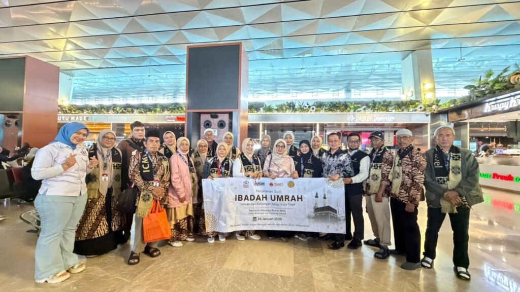 Jakarta, 24 Januari 2025 – Dalam upaya memperkuat nilai spiritual sekaligus mempererat silaturahmi antar profesional pendidikan, Ikatan Bimbingan dan Konseling Sekolah (IBKS) bekerja sama dengan Institut Pariwisata Trisakti melalui unit Pusat Bisnis Kepariwisataan, dengan dukungan Trisakti Tour and Travel dan ICMI Travel, sukses menyelenggarakan Program Umroh IBKS. Keberangkatan jamaah dilaksanakan pada 24 Januari 2026 melalui Bandara Internasional Soekarno-Hatta.