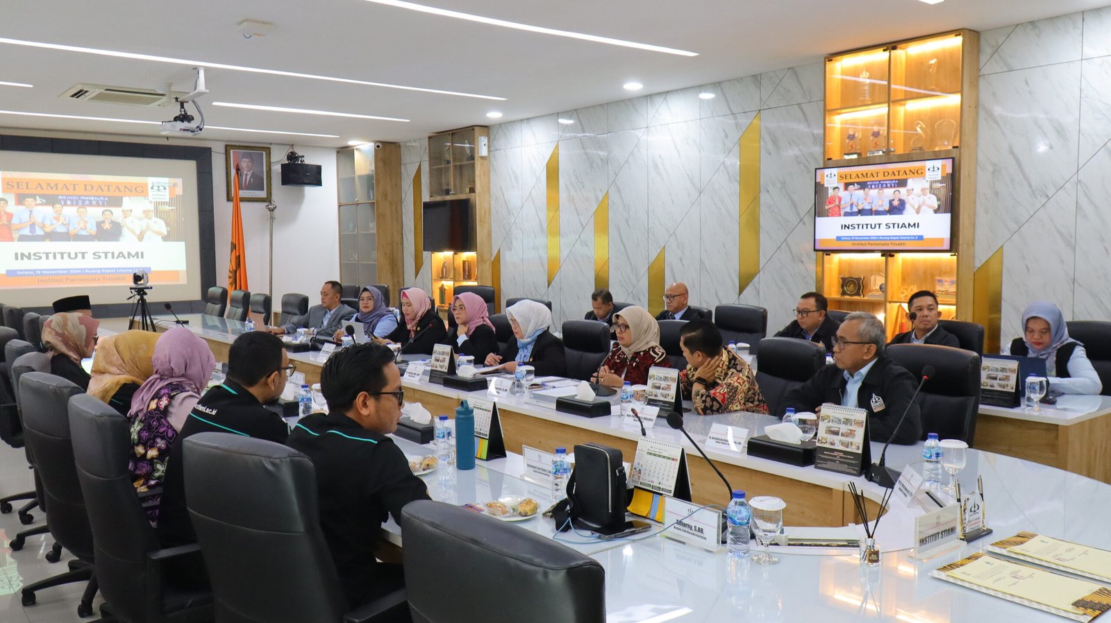 Sementara itu, kunjungan dari Institut STIAMI disambut hangat oleh Institut Pariwisata Trisakti, Ibu Fetty Asmaniati SE., MM selaku Rektor, Bapak Agus Riyadi, ST.Par., M.Sc., Ph.D., CHIA., QCRO (Wakil Rektor I), Ibu Dr. Nurbaeti, MM, QRGP (Wakil Rektor II) dan Ibu Dr. Novita Widyastuti Sugeng, M.Si.Par, (wakil Rektor III) beserta jajaran pejabat struktural lainnya.