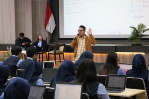 Dalam workshop ini, dua pembicara utama yang berkompeten di bidangnya berbagi wawasan praktis kepada peserta. Bapak William, Co-Founder dan Chief Marketing Officer Teh Kotjok, membagikan pengalamannya dalam membangun brand F&B dari gerobak hingga memiliki lebih dari 150 outlet. Peserta diajak untuk mendalami strategi riset pasar, storytelling produk, dan penetrasi pasar hotel dan kafe. “Zaman sekarang jualan teh aja harus pakai data. AI bisa bantu kita tahu jam berapa orang haus, rasa apa yang lagi tren,” ungkap Bapak William.