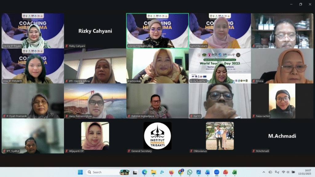 Jakarta, 13 November 2025 – Dalam upaya meningkatkan kualitas dan daya saing proposal hibah penelitian serta pengabdian kepada masyarakat, Institut Pariwisata Trisakti melalui Pusat Penelitian dan Pengabdian kepada Masyarakat (P3M) menyelenggarakan kegiatan Coaching Proposal Hibah BIMA 2026 pada Kamis, 13 November 2025. Kegiatan ini dilaksanakan secara daring melalui platform Zoom dan diikuti oleh para dosen dari berbagai program studi di lingkungan Institut Pariwisata Trisakti.