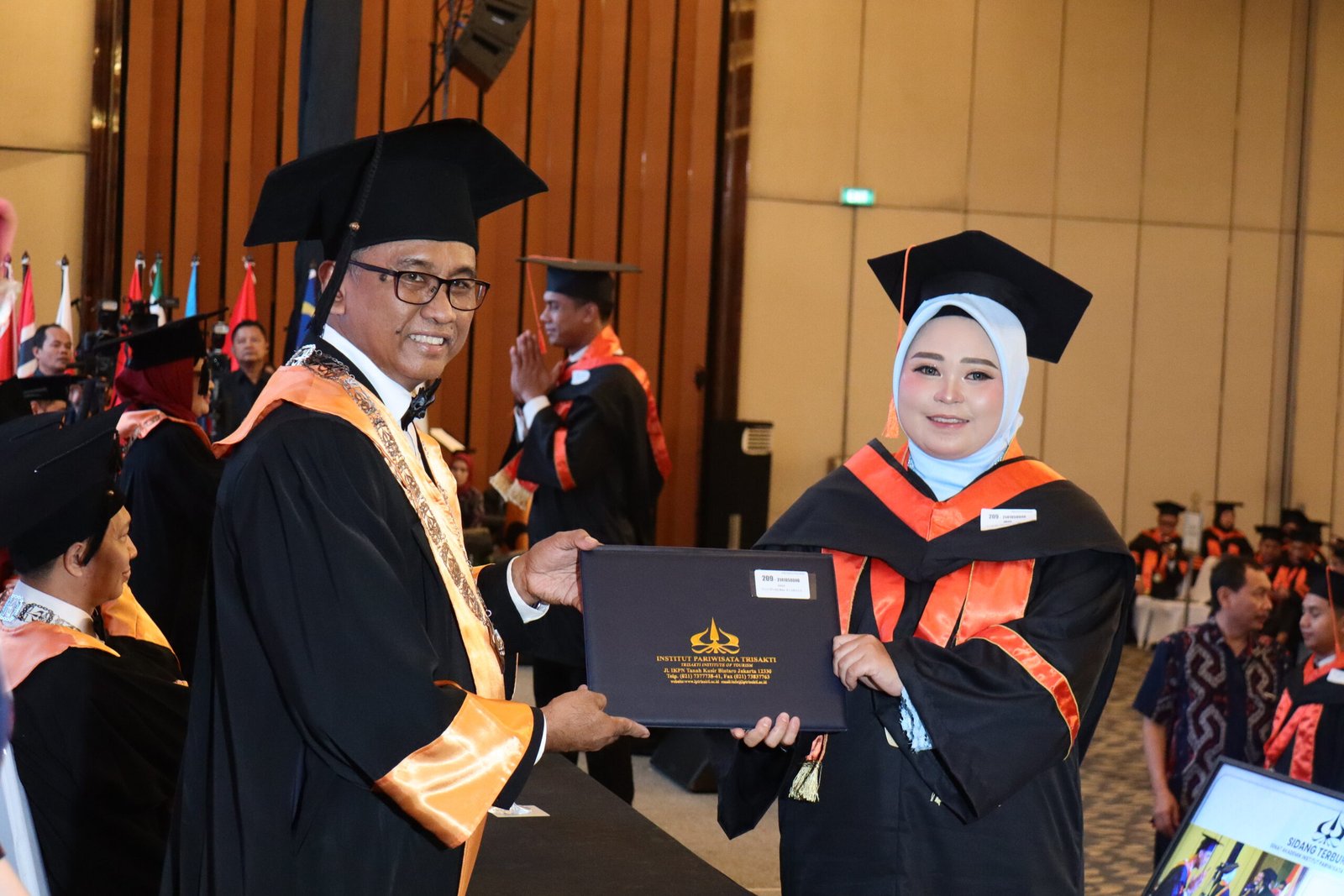 “Potensi pariwisata Indonesia masih sangat besar. Karena itu, pilihan kuliah di IP Trisakti adalah keputusan yang tepat untuk membangun masa depan,” ucapnya. Lukman Efendi, Bendahara Pengurus Yayasan Trisakti, menekankan bahwa Yayasan akan terus mendukung transformasi pendidikan tinggi agar kian berdampak nyata bagi masyarakat dan bangsa. Dia mengajak para lulusan menjadi agen perubahan. “Jadilah alumni IP Trisakti yang berdampak, mampu menciptakan inovasi sosial, teknologi hijau, kewirausahaan inklusif, dan membangun jejaring kolaboratif untuk kemajuan bangsa,” pesannya.