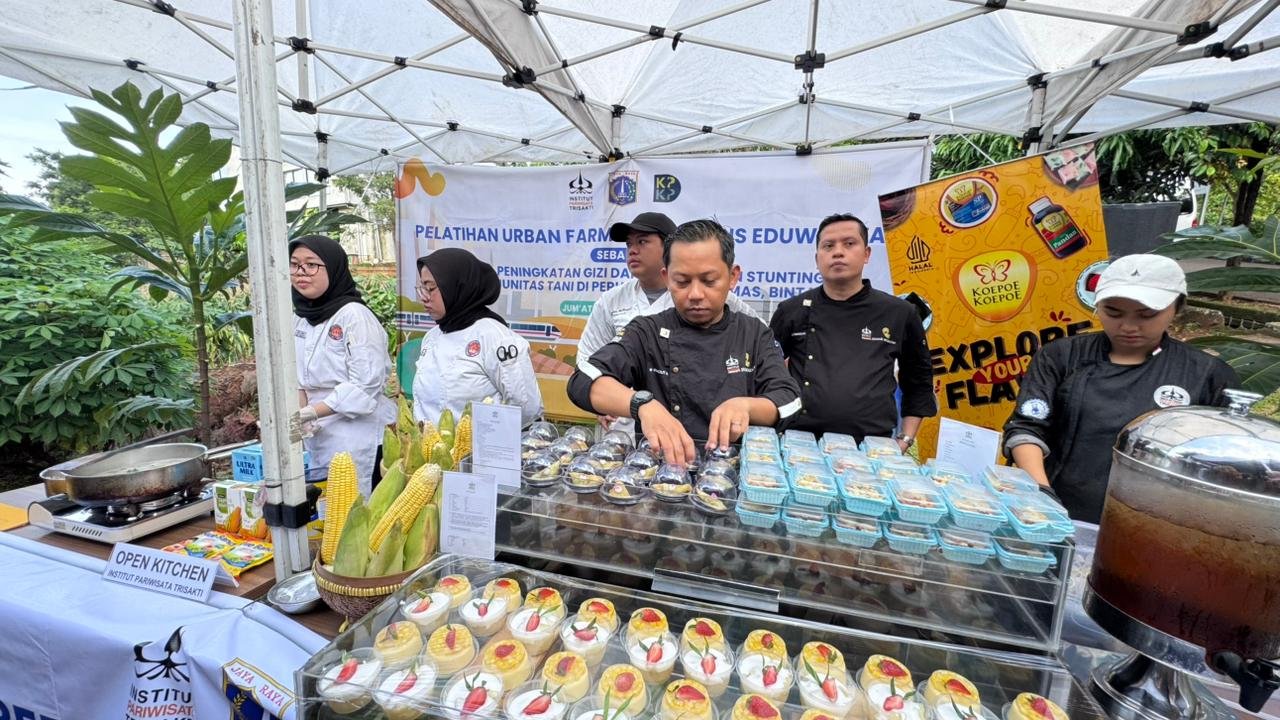 Jakarta Selatan (7/11) – Kebun Berseri Bintaro menggelar panen raya yang diikuti oleh Program Pengabdian kepada Masyarakat (PkM) dari Institut Pariwisata Trisakti. Acara ini bertujuan untuk memperkenalkan urban farming dan pengolahan makanan bergizi untuk mencegah stunting.