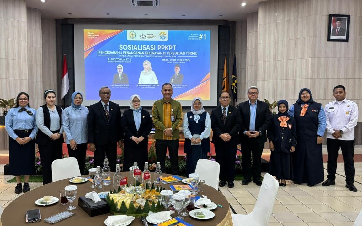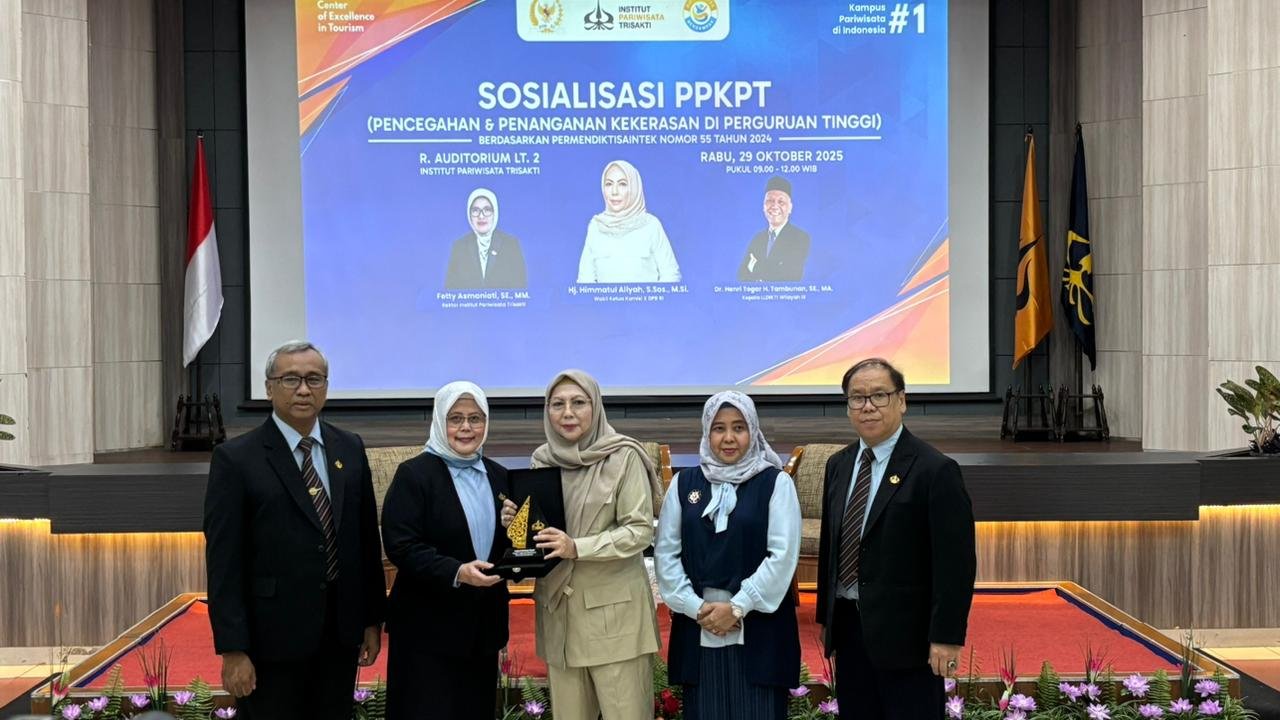 Jakarta, 29 Oktober 2025 — Institut Pariwisata Trisakti menyelenggarakan kegiatan Sosialisasi Pencegahan dan Penanganan Kekerasan di Lingkungan Perguruan Tinggi yang berlangsung di Ruang Auditorium Lantai 2, Kampus Institut Pariwisata Trisakti, pada Rabu (29/10). Kegiatan ini merupakan hasil kolaborasi antara Institut Pariwisata Trisakti dengan Komisi X DPR RI, Kementerian Pendidikan Tinggi, Sains, dan Teknologi Republik Indonesia, serta Lembaga Layanan Pendidikan Tinggi (LLDikti) Wilayah III.