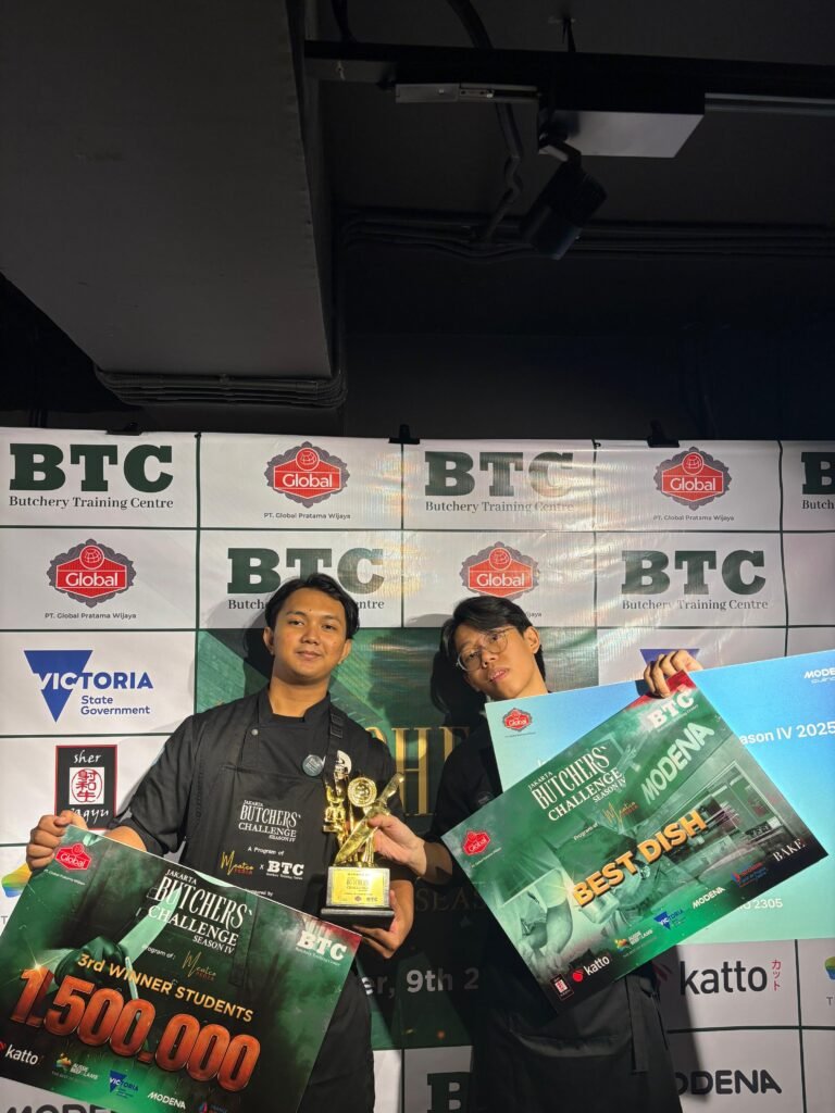 Jakarta, 9 Oktober 2025 – Dua mahasiswa Program Studi Perhotelan Institut Pariwisata Trisakti berhasil menorehkan prestasi membanggakan dalam ajang Jakarta Butcher Challenge 2025, sebuah kompetisi bergengsi yang menguji keterampilan dalam pengolahan dan penyajian daging.