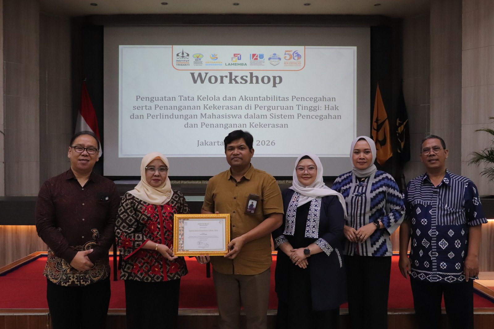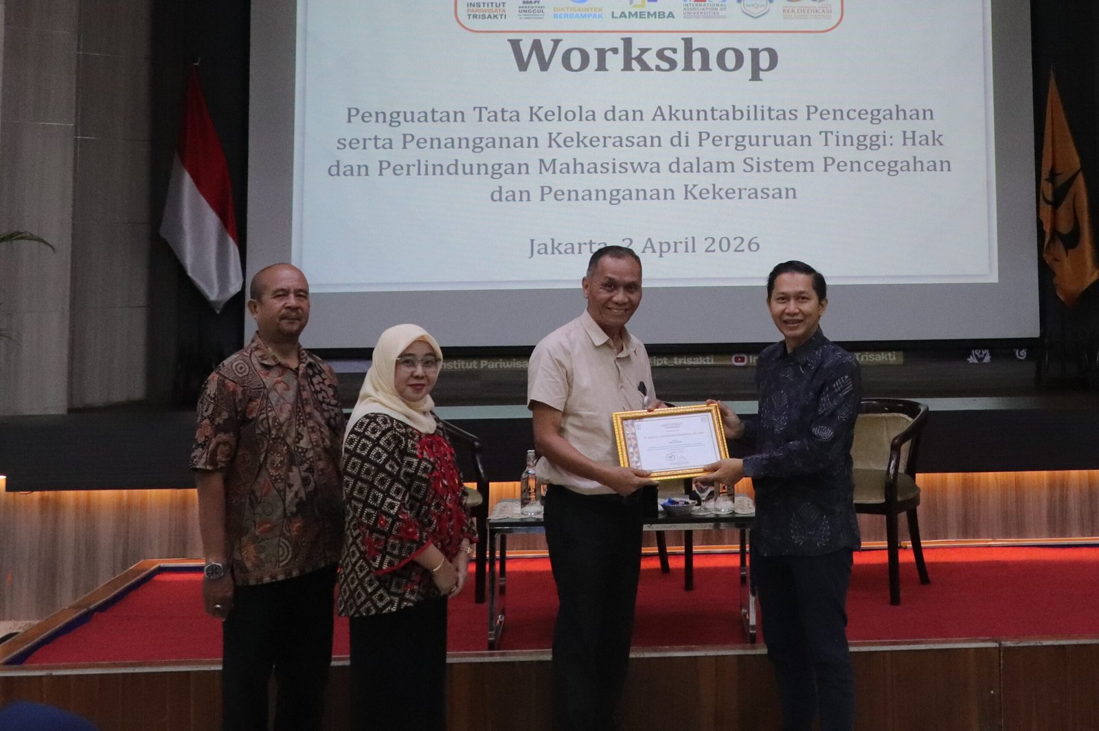 Jakarta, 2 April 2026 — Satuan Tugas Pencegahan dan Penanganan Kekerasan di Perguruan Tinggi (Satgas PPKPT) Institut Pariwisata Trisakti menyelenggarakan Workshop Penguatan Tata Kelola Akuntabilitas Pencegahan serta Penanganan Kekerasan di Perguruan Tinggi dengan tema “Hak dan Perlindungan Mahasiswa dalam Sistem Pencegahan dan Penanganan Kekerasan”. Kegiatan ini berlangsung di Ruang Auditorium IP Trisakti pada Kamis (2/4) dan diikuti oleh dosen, tenaga kependidikan, serta mahasiswa secara luring dan daring.