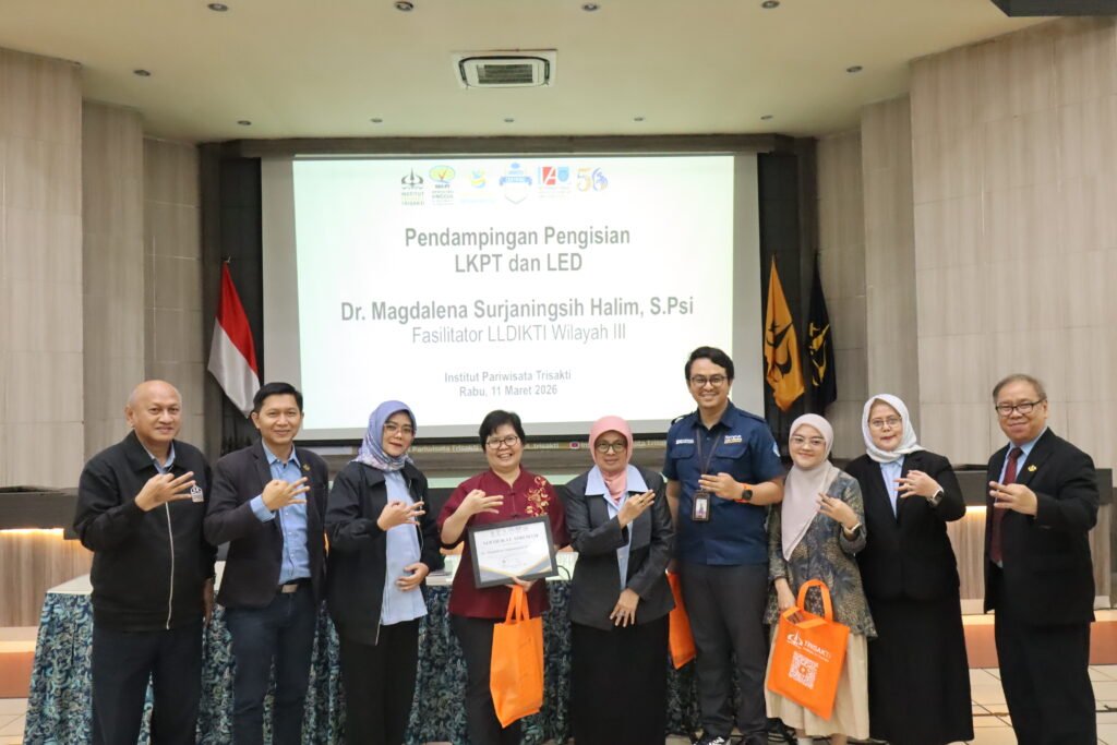 Jakarta, 11 Maret 2026 — Institut Pariwisata Trisakti menyelenggarakan kegiatan Pendampingan Pengisian Laporan Kinerja Perguruan Tinggi (LKPT) dan Laporan Evaluasi Diri (LED) pada Rabu (11/3/2026) di Ruang Auditorium Institut Pariwisata Trisakti. Kegiatan ini merupakan bagian dari upaya peningkatan mutu tata kelola dan persiapan akreditasi institusi melalui penyusunan laporan kinerja dan evaluasi diri yang komprehensif dan